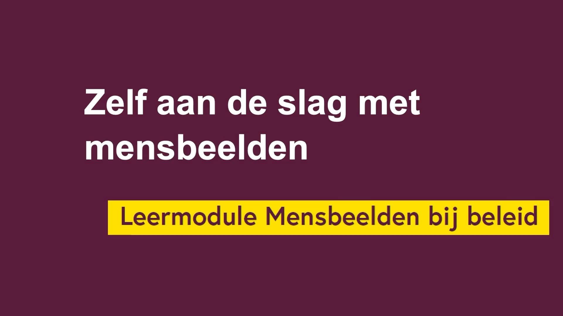 Met deze veelgestelde vragen in het achterhoofd, hebben wij en het Sociaal en Cultureel Planbureau (SCP) de handen ineen geslagen en zich gericht op de beleidsmakers en de praktijk. Het resultaat is de 'Leermodule Mensbeelden bij beleid', waarmee beleidsmakers zelf aan de slag kunnen met mensbeelden. In de leermodule leer je wat mensbeelden zijn, en welke onbedoelde neveneffecten ze kunnen hebben in beleid. Je leert ze herkennen in je eigen werkcontext en hoe je er met elkaar over in gesprek kunt.
